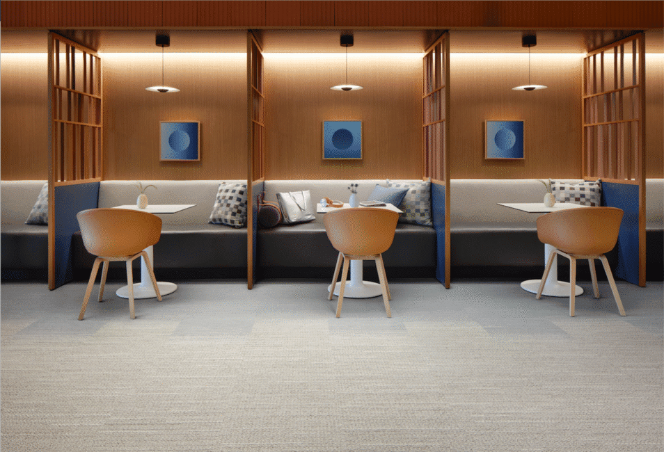 De Woven Gradience-collectie, geïnspireerd op biophylic design en natuurlijke kleurovergangen, is uitgebreid met vijf basiskleuren en zeven kleurverlopen. Het nieuwe kleurenpalet bouwt voort op de succesvolle eerste collectie uit 2021 en sluit perfect aan op de hedendaagse behoeften voor commerciële ruimtes. De Woven Gradience-collectie is naar voorbeeld van de natuur ontworpen om de manier waarop mensen zich door ruimtes bewegen te transformeren. De collectie bestaat uit twee op elkaar aansluitende geweven stijlen, ontworpen om ruimtes af te bakenen via unieke kleurovergangen. Het nieuwe palet biedt krachtige statementkleuren, neutrale tinten en alles daartussen.
