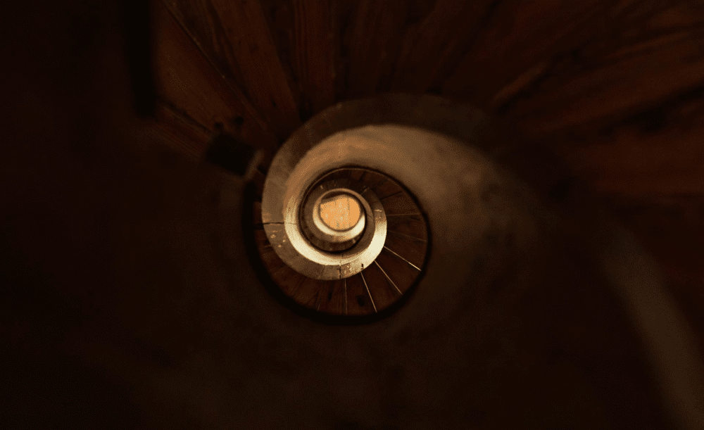 “De spiraaltrap intrigeert me als een psychologisch motief. Ze is tegelijk een draaikolk, een val, een afdaling en een opgang — een object dat tussen ruimtes in lijkt te zweven. Architecturaal is ze stevig verankerd, maar mentaal voelt ze als een labyrint zonder einde. In dat spanningsveld, tussen controle en verlies, tussen waarnemen en verdwalen”. — Minne Kersten, kunstenaar